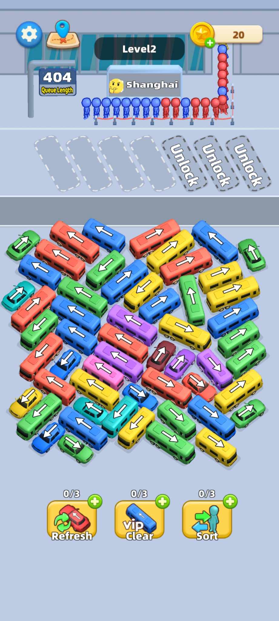 Người chơi phải di chuyển các phương tiện theo thứ tự hợp lý để giải phóng bãi đỗ xe mà không gây tắc nghẽn. Mỗi màn chơi có độ khó tăng dần, đòi hỏi sự tư duy logic và tính toán kỹ lưỡng.