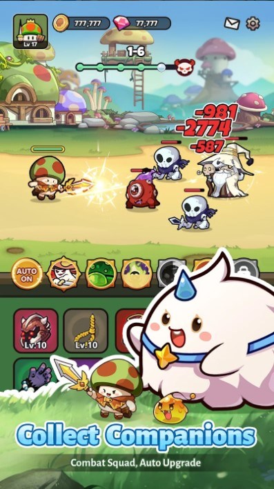 Ấn tượng đầu tiên là game khá nhẹ và dễ làm quen. Tất cả diễn biến hầu như tự động – nhân vật tự chiến đấu, tự thu thập vật phẩm, nhiệm vụ chỉ là nâng cấp, thay trang bị và quyết định hướng phát triển cho “nấm” của mình. Ban đầu, tôi cảm thấy rất thư giãn khi chơi. Tuy nhiên, sau vài ngày, cảm giác bắt đầu lặp lại: gameplay không đổi mới nhiều, hệ thống nâng cấp có phần cứng nhắc nếu không nạp tiền.
