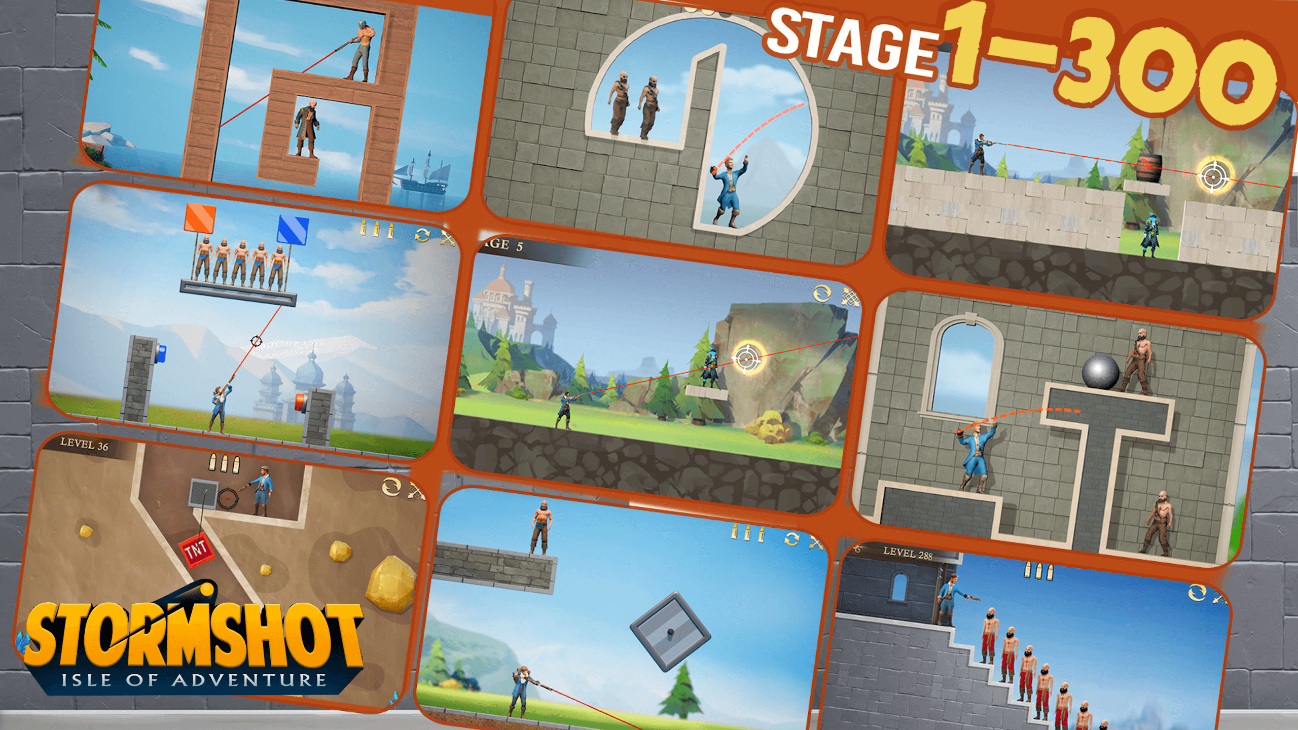 Trong Stormshot: Isle of Adventure, người chơi vào vai một nhà thám hiểm lạc vào đảo hoang bí ẩn. Nhiệm vụ là xây dựng căn cứ, thu thập tài nguyên, chiêu mộ binh lính, bảo vệ lãnh thổ và khám phá bí mật của hòn đảo. Xen giữa những hoạt động chiến lược là các mini-game bắn súng theo kiểu tính góc và lực – khá giống Angry Birds nhưng mang màu sắc hành động hơn.